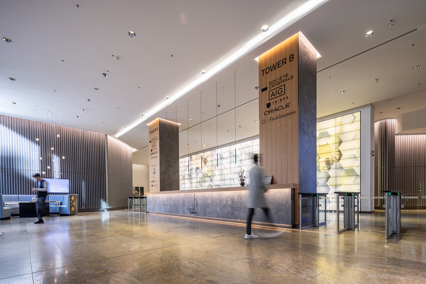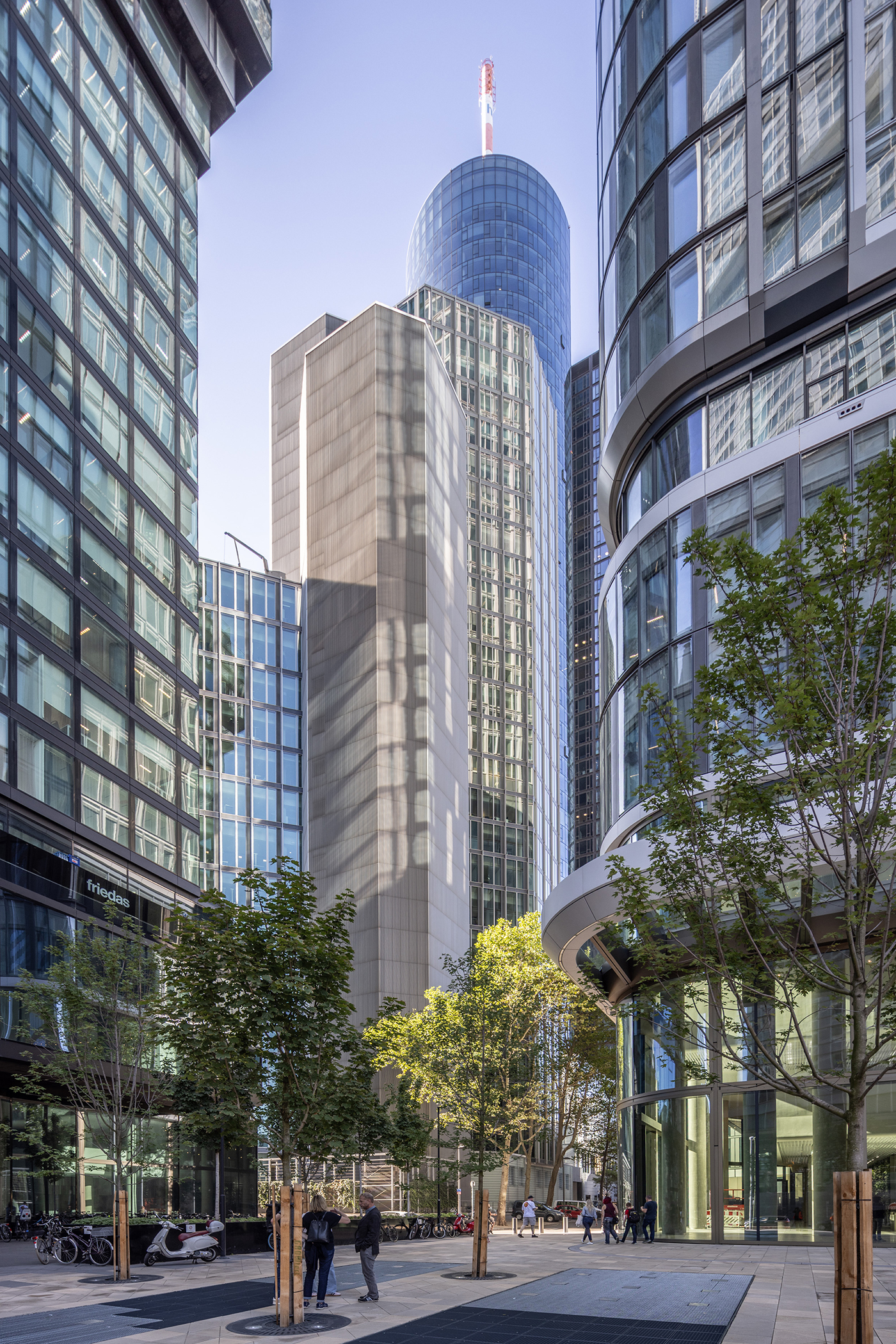 Charakteristisch sind die polygonale Gebäudestruktur sowie die zweigeschossigen Wintergärten, die in die Fassadenarchitektur integriert sind und für eine hohe Tageslichtqualität sorgen. Die Lage im unmittelbaren Umfeld bedeutender Finanz- und Dienstleistungsunternehmen unterstreicht die nachhaltige Standortqualität.